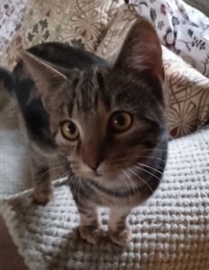 Hi, Portia here! I came to Pawprints after being saved by some kind people who found me living in a car engine. They took good care of me until a rescue could help. My foster meowmy says I’m a lovely easy kitten, I have been hanging out with the other kittens in my foster home with no problems. I’m a dab hand at fishing, always have to get those paws in the water bowl to test it first! I’d make the purrfect addition to any family! Get in touch if you want to meet me