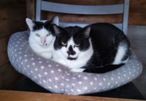 Hello, Domino and Paisley here. We came to Pawprints after our mummy has us on the mean streets and some kind people rescued us. We are shy when we first meet you but once we get to know you we are a sweet friendly loving pair. Our foster mummy thinks we would be better in a quieter house with no litter ones just so we can feel comfy to be nice and brave and get to know you. Can you see our purrtential? We’d love our very own place to call home soon